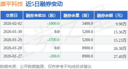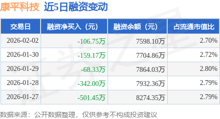 证券之星消息,2月2日,康平科技(300907)融资买入340.74万元,融资偿还447.49万元,融资净卖出106.75万元,融资余额7598.1万元。