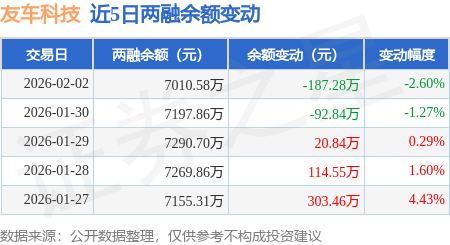 证券之星消息,2月2日,友车科技(688479)融资买入642.5万元,融资偿还829.78万元,融资净卖出187.28万元,融资余额7010.58万元。