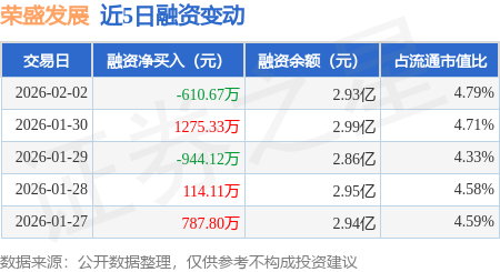 证券之星消息,2月2日,荣盛发展(002146)融资买入1430.72万元,融资偿还2041.39万元,融资净卖出610.67万元,融资余额2.93亿元。