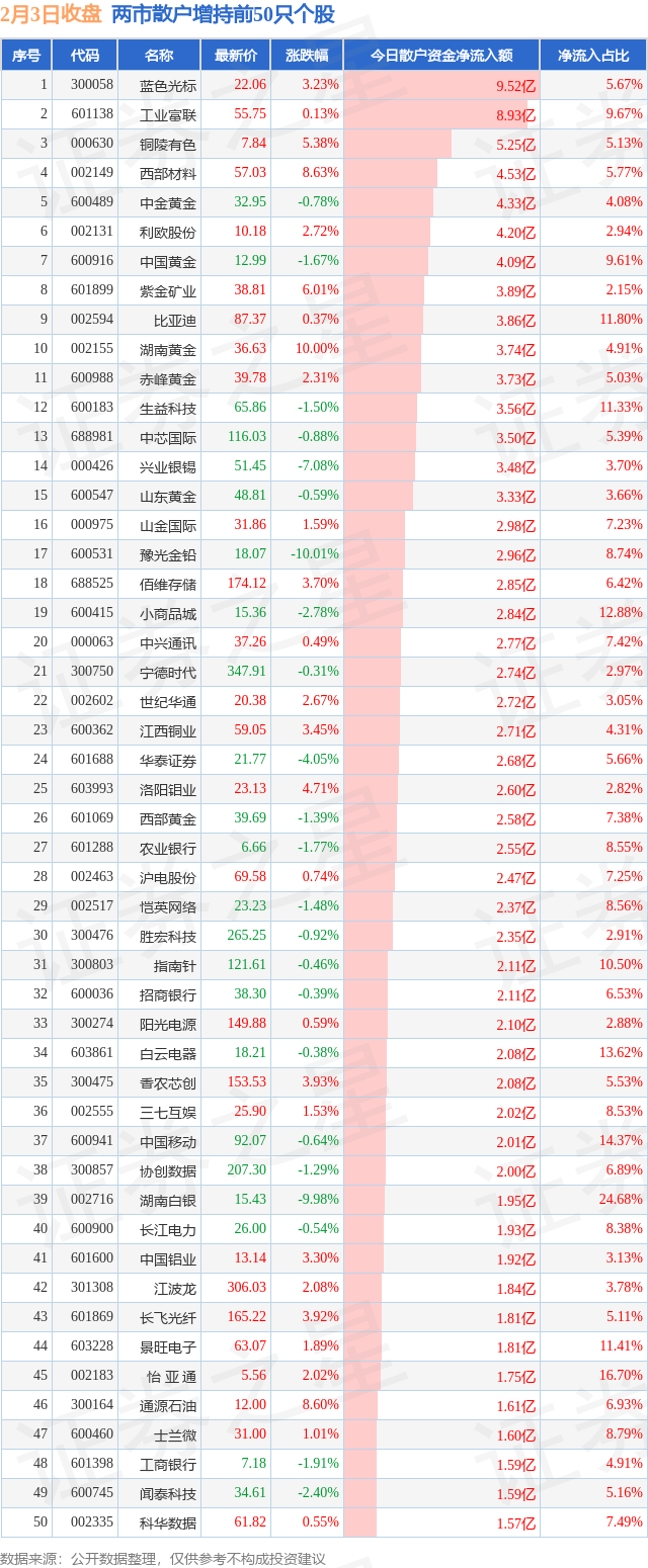 两市散户增持最多的前十只个股为: