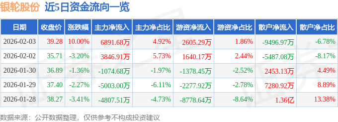 2月3日的资金流向数据方面,主力资金净流入6891.68万元,占总成交额4.92%,游资资金净流入2605.29万元,占总成交额1.86%,散户资金净流出9496.97万元,占总成交额6.78%。