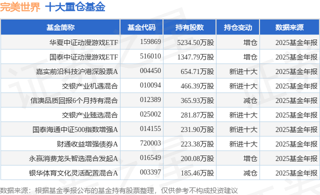根据2025基金年报公募基金重仓股数据,重仓该股的公募基金共56家,其中持有数量最多的公募基金为华夏基金的华夏中证动漫游戏ETF。华夏中证动漫游戏ETF目前规模为126.11亿元,最新净值1.5342(2月2日),较上一交易日下跌3.5%,近一年上涨52.61%。该公募基金现任基金经理为鲁亚运。鲁亚运在任的基金产品包括:华夏创业板成长ETF联接A,管理时间为2022年6月10日至今,期间收益率为2.5%;华夏中证全指证券公司ETF联接A,管理时间为2022年6月10日至今,期间收益率为26.83%;华夏国证疫苗与生物科技指数发起A,管理时间为2022年9月6日至今,期间收益率为-34.69%;华夏战略新兴成指ETF联接A,管理时间为2023年3月27日至今,期间收益率为33.97%。