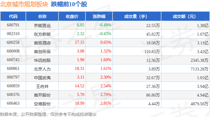 证券之星消息,2月3日北京城市规划板块较上一交易日上涨3.85%,首都在线领涨。当日上证指数报收于4067.74,上涨1.29%。深证成指报收于14127.1,上涨2.19%。北京城市规划板块个股涨跌见下表: