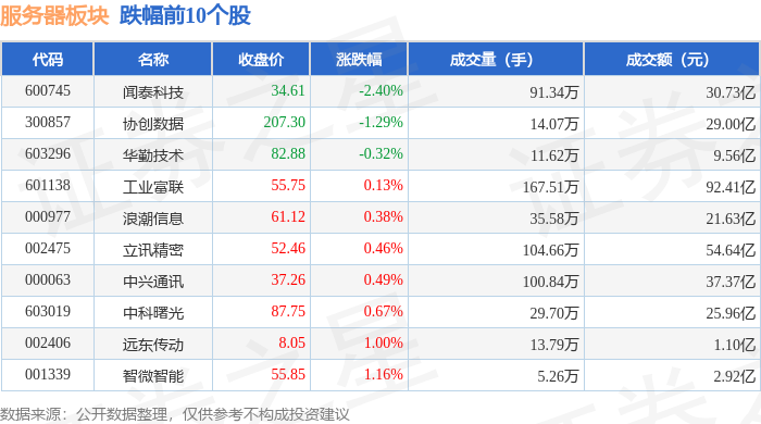 从资金流向上来看,当日服务器板块主力资金净流出12.04亿元,游资资金净流出3.37亿元,散户资金净流入15.41亿元。服务器板块个股资金流向见下表: