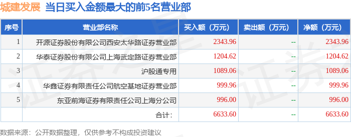证券之星消息,沪深交易所2026年2月3日公布的交易公开信息显示,城建发展(600266)因有价格涨跌幅限制的日收盘价格涨幅偏离值达到7%的前五只证券登上龙虎榜。此次是近5个交易日内第1次上榜。