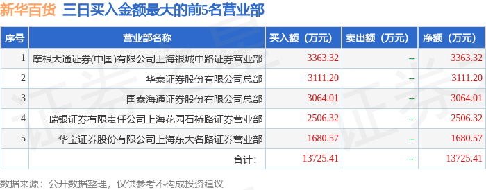 证券之星消息,沪深交易所2026年2月3日公布的交易公开信息显示,新华百货(600785)因非ST、*ST和S证券连续三个交易日内收盘价格涨幅偏离值累计达到20%的证券登上龙虎榜。此次是近5个交易日内第2次上榜。