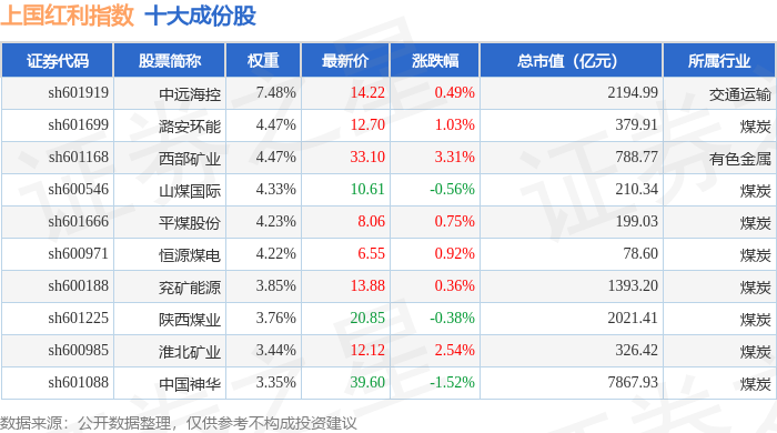 证券之星消息,2月3日,上国红利(000151)指数报收于1521.62点,涨0.25%,成交239.33亿元,换手率0.38%。当日该指数成份股中,上涨的有16家,南钢股份以3.54%的涨幅领涨,下跌的有14家,工商银行以1.91%的跌幅领跌。