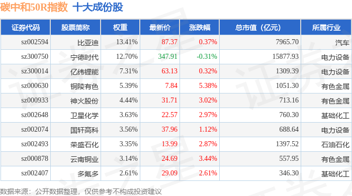 碳中和50R(480021)指数十大成份股详情如下: