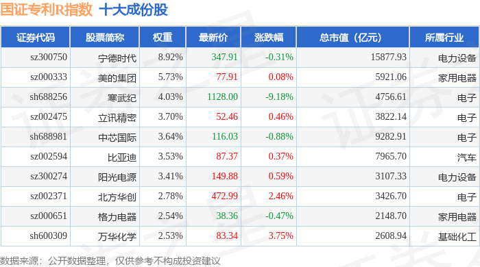 国证专利R(480070)指数十大成份股详情如下: