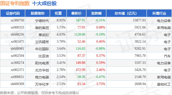 国证专利(980070)指数十大成份股详情如下: