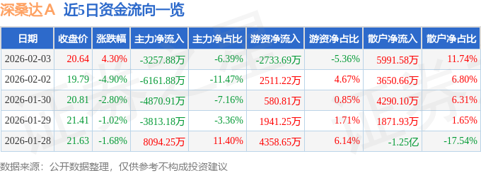 2月3日的资金流向数据方面,主力资金净流出3257.88万元,占总成交额6.39%,游资资金净流出2733.69万元,占总成交额5.36%,散户资金净流入5991.58万元,占总成交额11.74%。