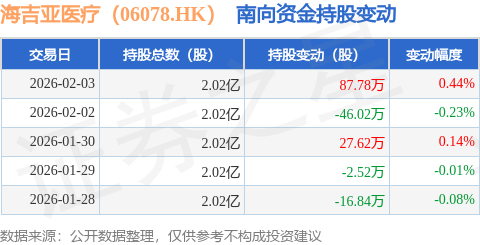 证券之星消息,2月3日南向资金增持87.78万股海吉亚医疗(06078.HK)。近5个交易日中,获南向资金增持的有2天,累计净增持50.02万股。近20个交易日中,获南向资金减持的有14天,累计净减持551.84万股。截至目前,南向资金持有海吉亚医疗(06078.HK)2.02亿股,占公司已发行普通股的32.72%。
