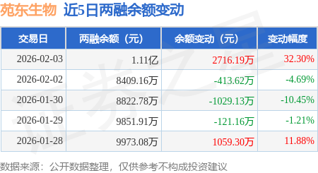 证券之星消息,2月3日,苑东生物(688513)融资买入6847.55万元,融资偿还4135.44万元,融资净买入2712.12万元,融资余额1.11亿元。