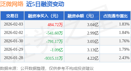 证券之星消息,2月3日,泛微网络(603039)融资买入2699.53万元,融资偿还2214.8万元,融资净买入484.72万元,融资余额3.04亿元。