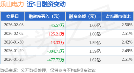 证券之星消息,2月3日,乐山电力(600644)融资买入1601.84万元,融资偿还1647.4万元,融资净卖出45.57万元,融资余额1.6亿元,近20个交易日中有12个交易日出现融资净买入。