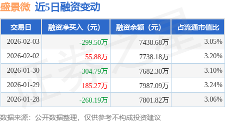 证券之星消息,2月3日,盛景微(603375)融资买入672.9万元,融资偿还972.4万元,融资净卖出299.5万元,融资余额7438.68万元。