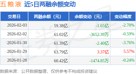 证券之星消息,2月3日,五 粮 液(000858)融资买入2.45亿元,融资偿还4.1亿元,融资净卖出1.64亿元,融资余额58.47亿元。