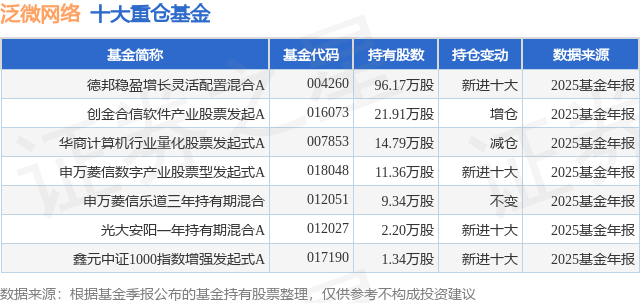 重仓泛微网络的公募基金请见下表: