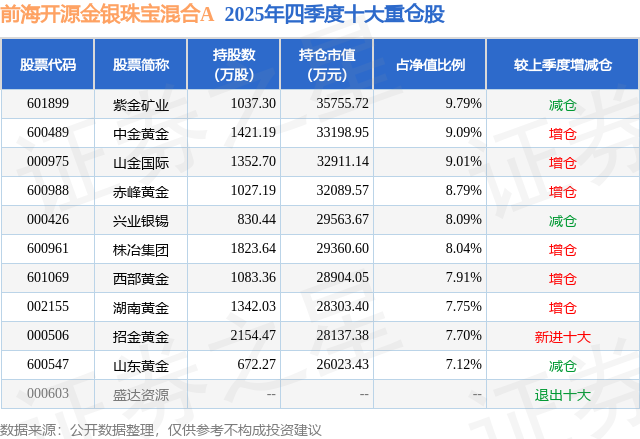 前海开源金银珠宝混合A的前十大重仓股如下: