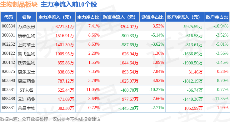 从资金流向上来看,当日生物制品板块主力资金净流出1.59亿元,游资资金净流入1.87亿元,散户资金净流出2835.0万元。生物制品板块个股资金流向见下表:
