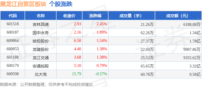 从资金流向上来看,当日黑龙江自贸区板块主力资金净流入647.77万元,游资资金净流出331.19万元,散户资金净流出316.58万元。黑龙江自贸区板块个股资金流向见下表:
