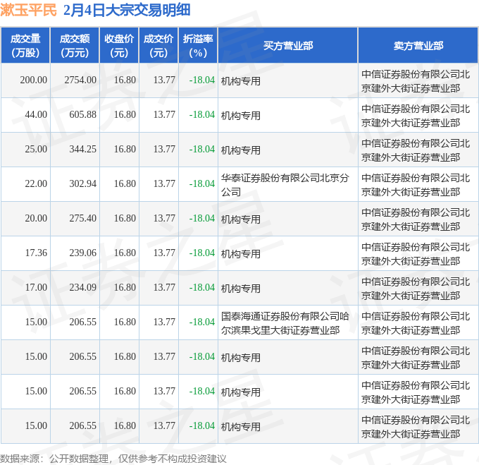 证券之星消息,2月4日漱玉平民发生大宗交易,交易数据如下: