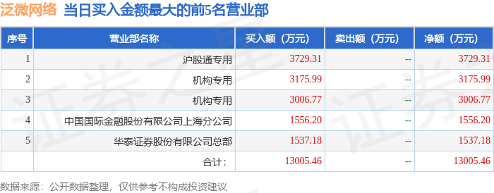 证券小知识:龙虎榜是交易所披露的竞价交易公开信息,现身龙虎榜的个股都是当日最为活跃的个股,是投资者日常重点关注的数据。交易所公布当日买入金额和卖出金额前五名的席位,其中一些席位代表特殊意义,如机构专用席位是指基金专用席位、券商自营专用席位、社保专用席位、券商理财专用席位、保险机构专用席位、保险机构租用席位、QFII专用席位等机构投资者买卖证券的专用通道和席位。深股通专用、沪股通专用为北向资金的交易席位。