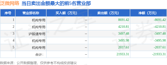 从龙虎榜公布的当日买卖数据来看,机构合计净卖出1.23亿元,北向资金合计净买入231.83万元。