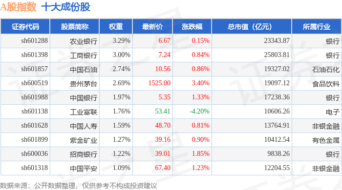 A股指数(000002)十大成份股详情如下: