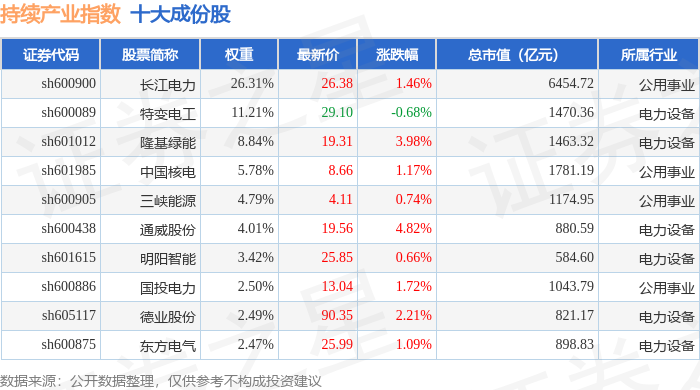 持续产业(000114)指数十大成份股详情如下: