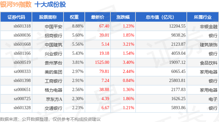 银河99(000959)指数十大成份股详情如下: