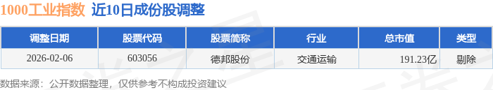 近10日内1000工业(399383)指数成份股做了调整,剔除了1只股票。