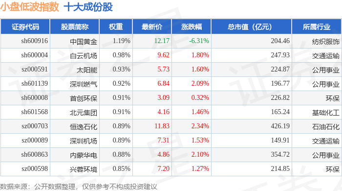 证券之星消息,2月4日,小盘低波(399408)指数报收于16293.36点,涨1.8%,成交590.05亿元,换手率1.76%。当日该指数成份股中,上涨的有140家,中集集团以10.03%的涨幅领涨,下跌的有10家,中国黄金以6.31%的跌幅领跌。