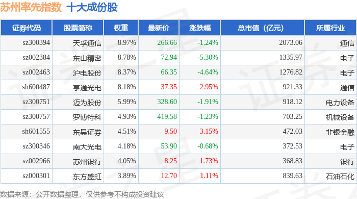 苏州率先(399410)指数十大成份股详情如下: