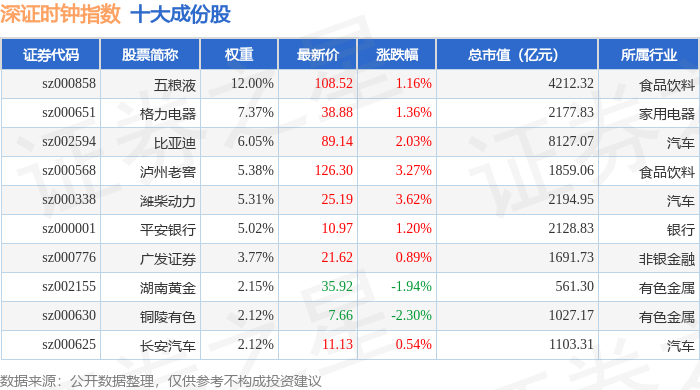 深证时钟(399644)指数十大成份股详情如下: