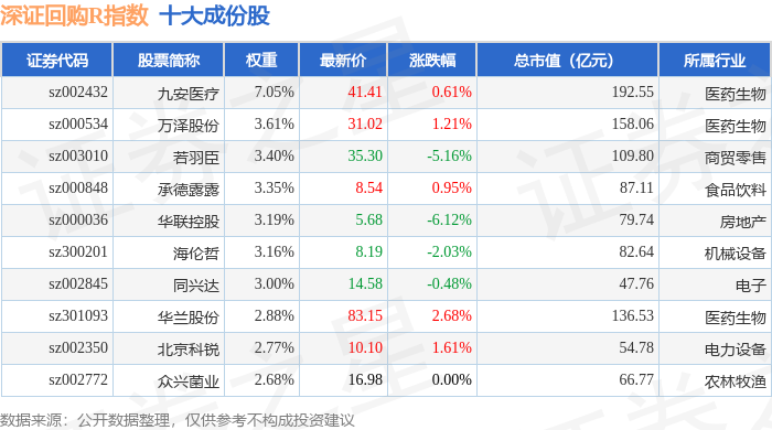 深证回购R(470063)指数十大成份股详情如下: