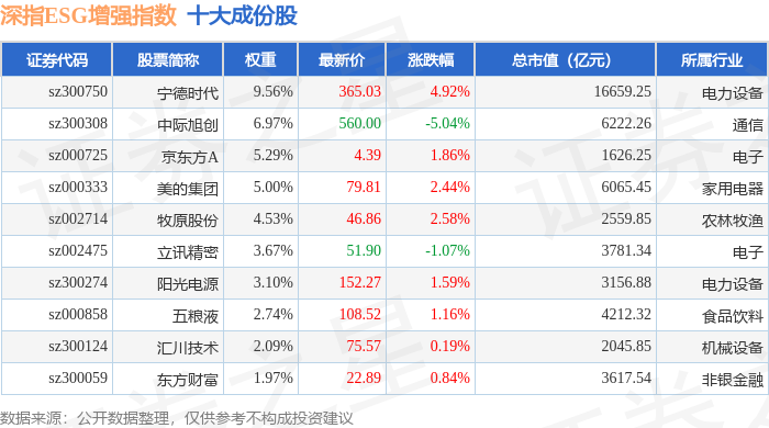 资金流向方面,深指ESG增强(970032)指数成份股当日主力资金净流出合计95.7亿元,游资资金净流入合计55.06亿元,散户资金净流入合计40.64亿元。成份股资金流向详情见下表: