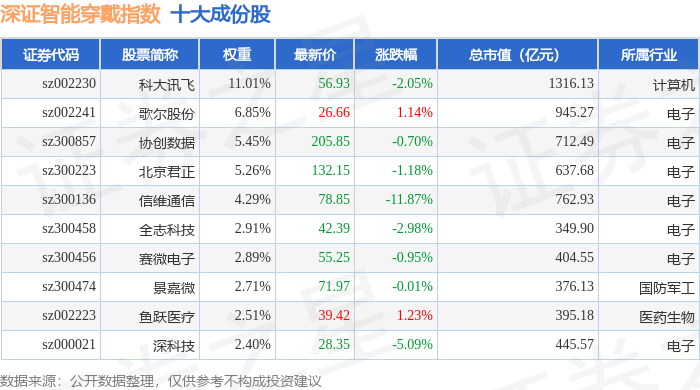 深证智能穿戴(970074)指数十大成份股详情如下: