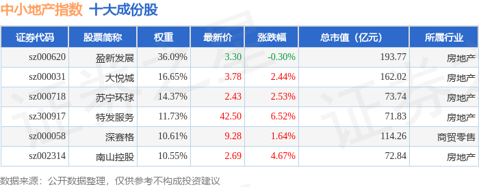 中小地产(971002)指数十大成份股详情如下: