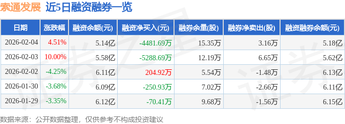 证券之星消息,截至2026年2月4日收盘,索通发展(603612)报收于30.58元,上涨4.51%,换手率10.54%,成交量52.51万手,成交额16.19亿元。