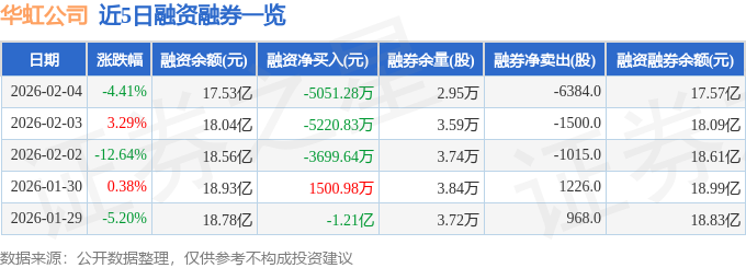 华虹公司融资融券信息显示,融资方面,当日融资买入1.8亿元,融资偿还2.31亿元,融资净偿还5051.28万元。融券方面,融券卖出600.0股,融券偿还6984.0股,融券余量2.95万股,融券余额394.63万元。融资融券余额17.57亿元。