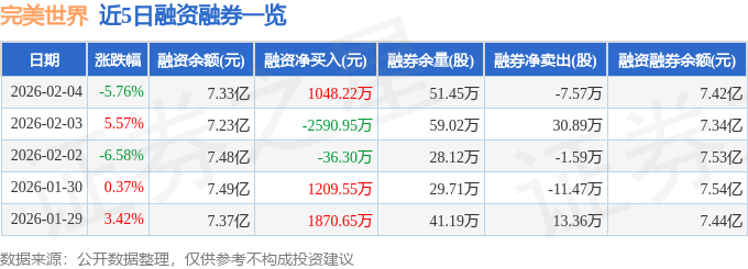 证券之星消息,截至2026年2月4日收盘,完美世界(002624)报收于17.51元,下跌5.76%,换手率3.28%,成交量59.89万手,成交额10.65亿元。