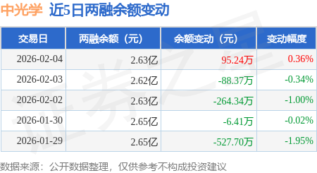 证券之星消息,2月4日,中光学(002189)融资买入926.65万元,融资偿还832.38万元,融资净买入94.27万元,融资余额2.62亿元。