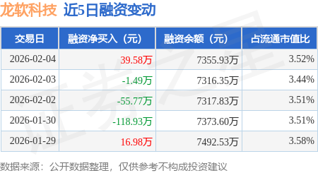 证券之星消息,2月4日,龙软科技(688078)融资买入160.62万元,融资偿还121.04万元,融资净买入39.58万元,融资余额7355.93万元。