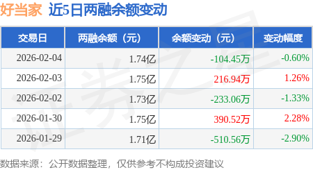 证券之星消息,2月4日,好当家(600467)融资买入1756.06万元,融资偿还1868.39万元,融资净卖出112.33万元,融资余额1.74亿元。