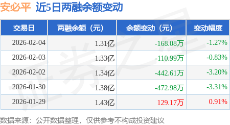 证券之星消息,2月4日,安必平(688393)融资买入417.0万元,融资偿还585.63万元,融资净卖出168.62万元,融资余额1.31亿元。