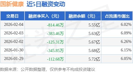 证券之星消息,2月4日,国新健康(000503)融资买入437.02万元,融资偿还1251.48万元,融资净卖出814.46万元,融资余额5.55亿元。