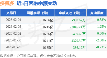 证券之星消息,2月4日,多氟多(002407)融资买入5934.0万元,融资偿还6867.54万元,融资净卖出933.54万元,融资余额16.02亿元。