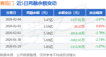 证券之星消息,2月4日,喜临门(603008)融资买入1577.04万元,融资偿还2717.16万元,融资净卖出1140.13万元,融资余额5.47亿元。