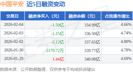 证券之星消息,2月4日,中国平安(601318)融资买入6.29亿元,融资偿还7.79亿元,融资净卖出1.5亿元,融资余额334.99亿元,近20个交易日中有15个交易日出现融资净买入。